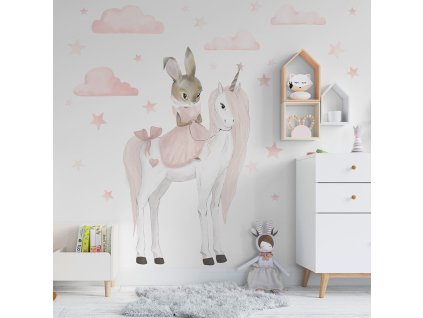 Dětská nálepka na zeď Jednorožec s křídly watercolor