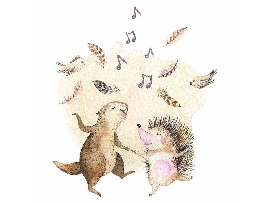 Dětská nálepka na zeď Forest team - tanec bobra a ježka