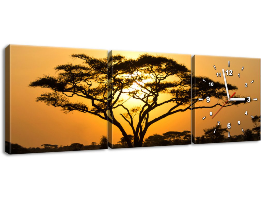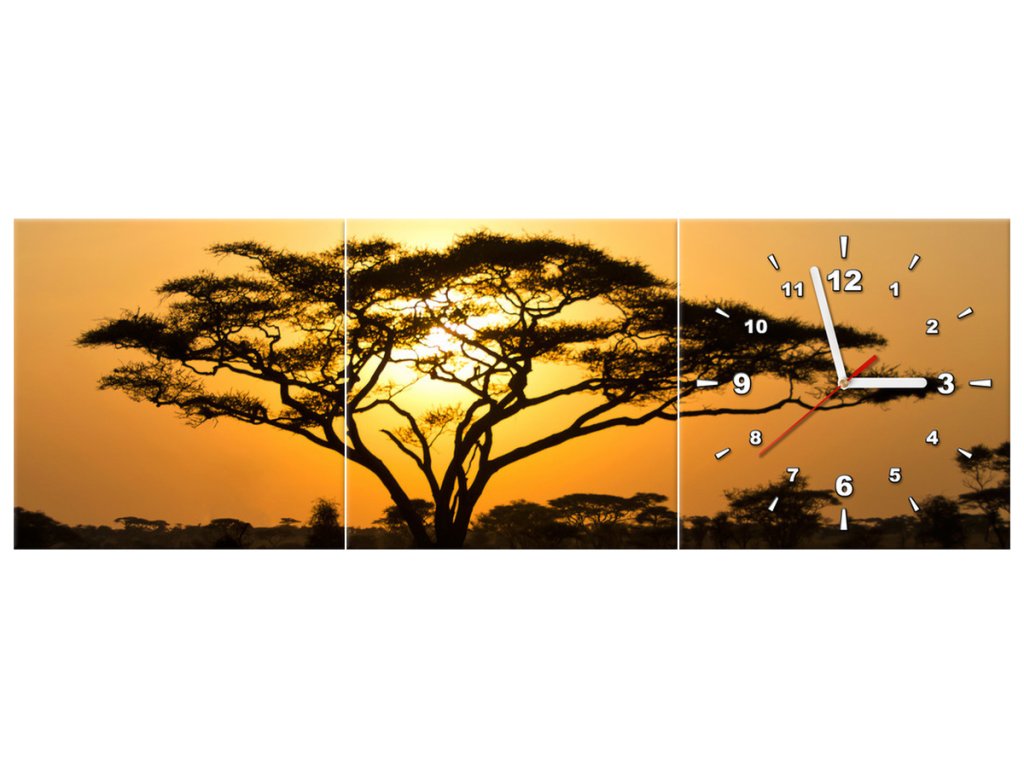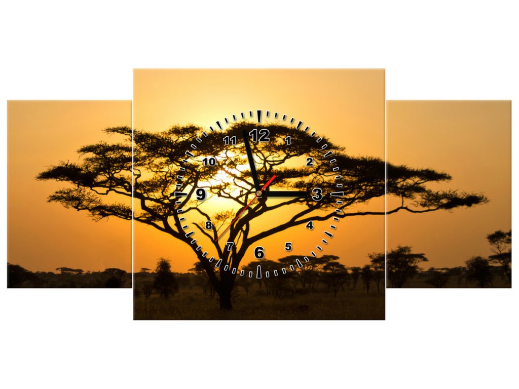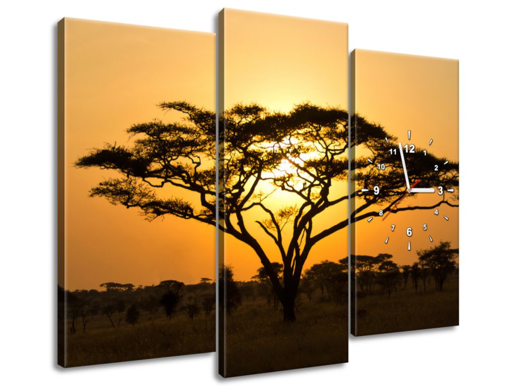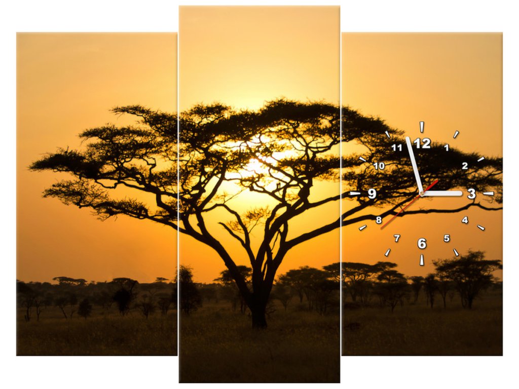 Obraz s hodinami Akácie v Serengeti - 3 dílný
