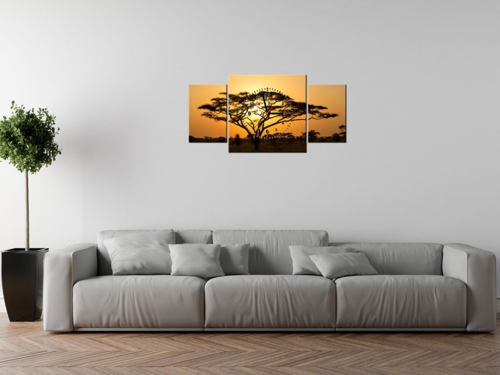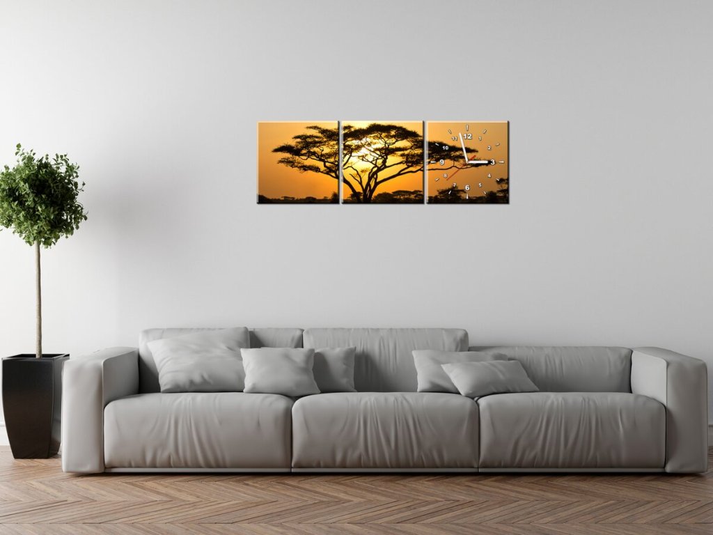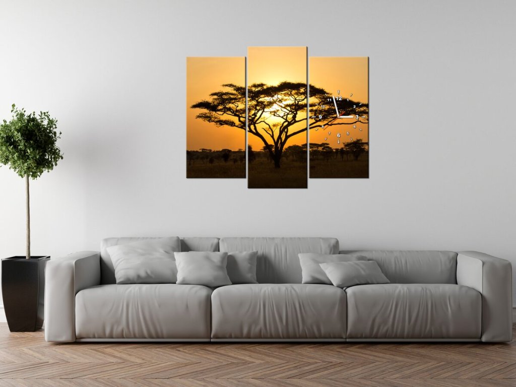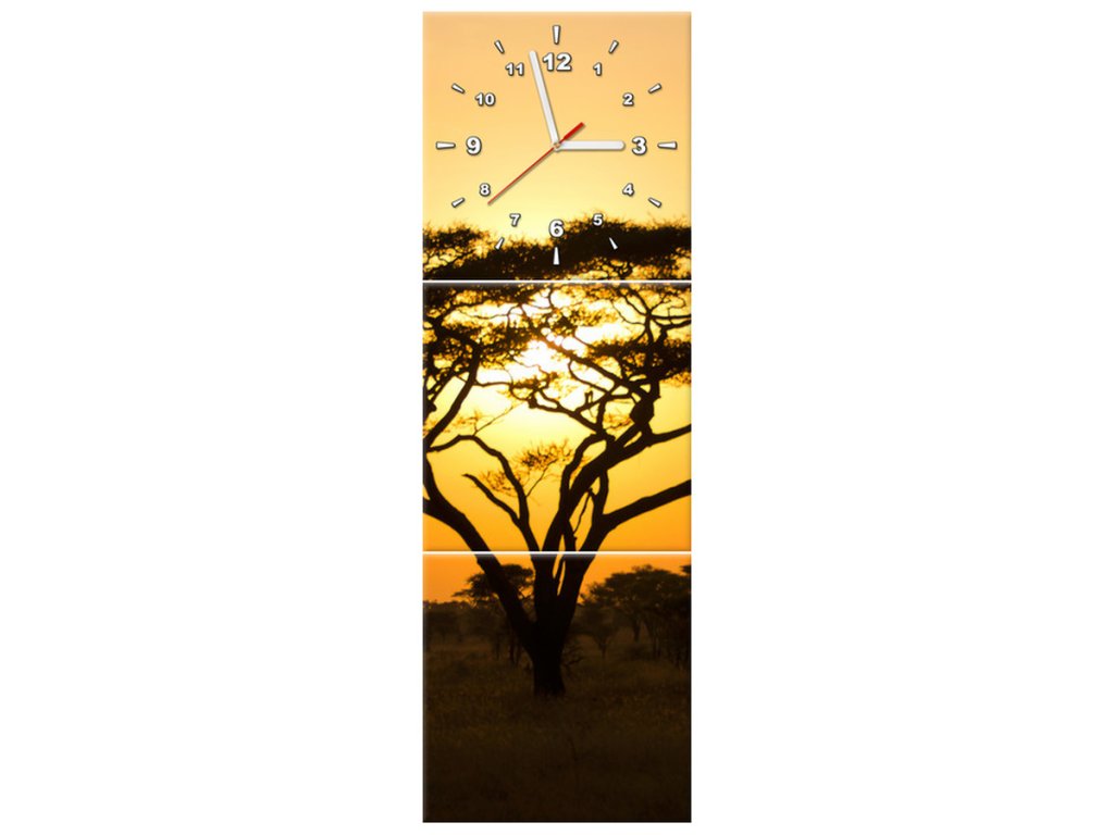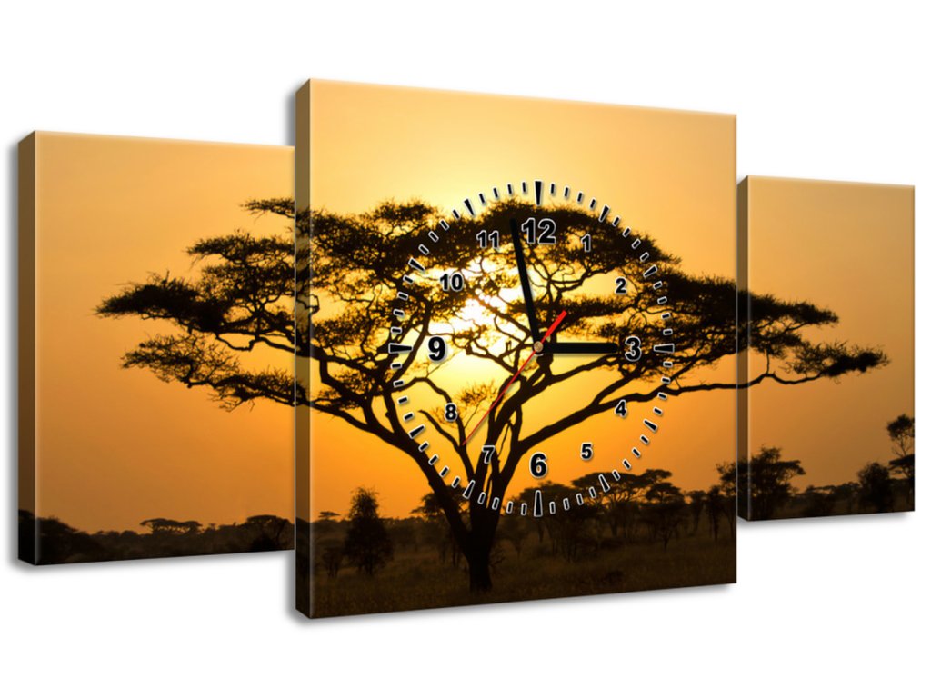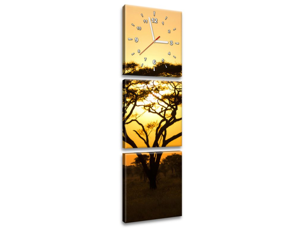 Obraz s hodinami Akácie v Serengeti - 3 dílný