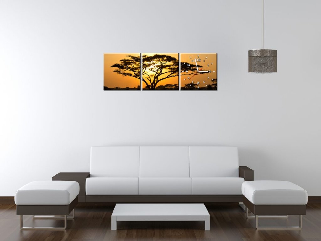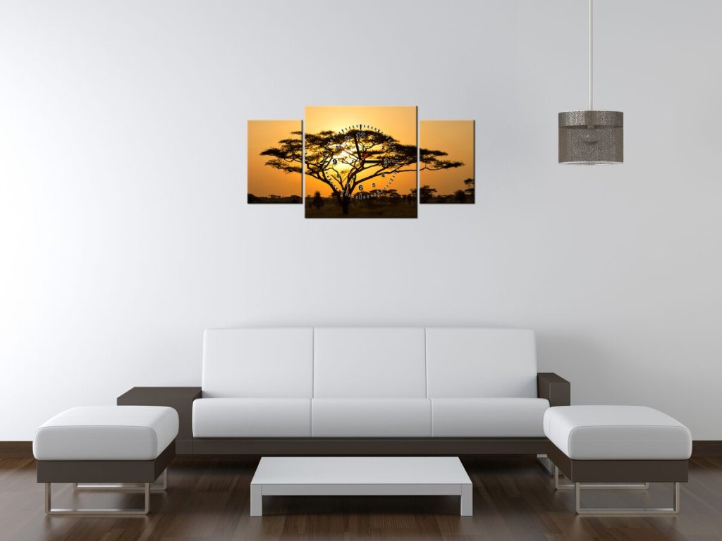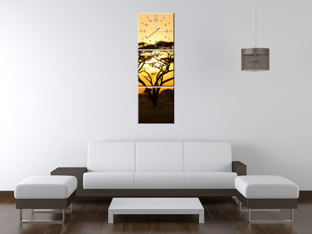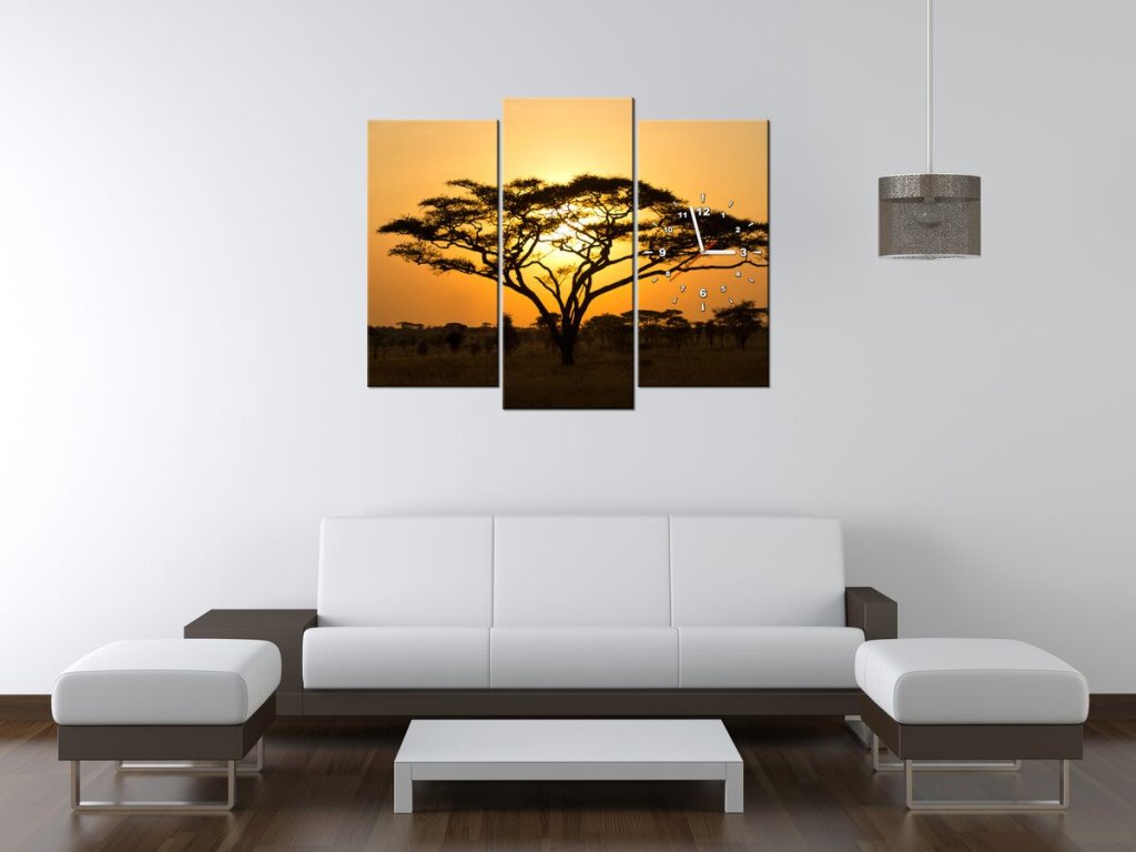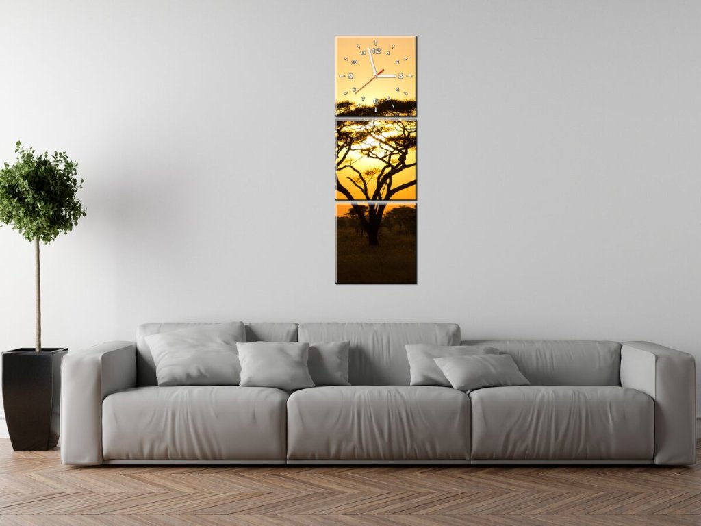 Obraz s hodinami Akácie v Serengeti - 3 dílný